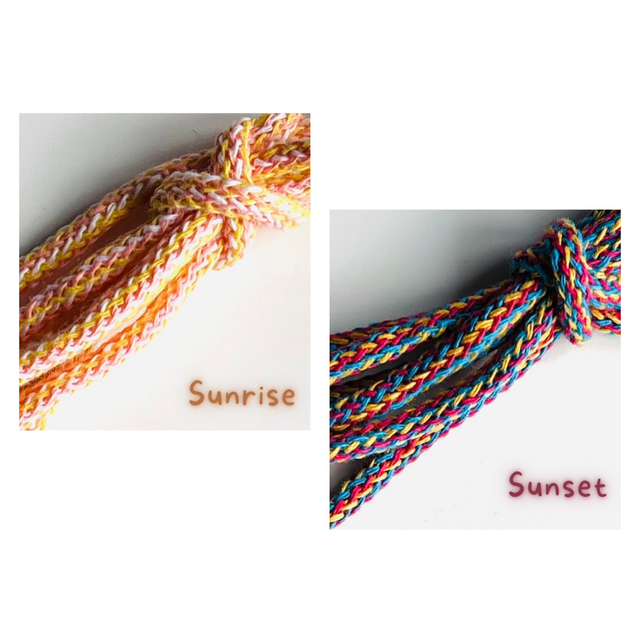 Handmade by myself, using premium blended cotton cord, hung on a D-ring with lobster claw clasp.